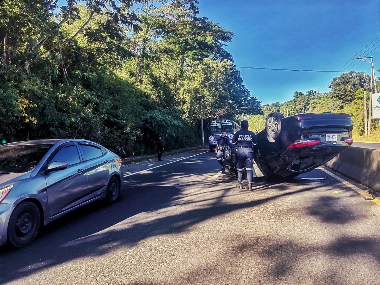 El percance ocurrió en el kilómetro 57 de la carretera que conecta Santa Ana con San Salvador. El conductor del vehículo, único afectado, resultó herido y fue trasladado de inmediato a un centro hospitalario para recibir atención médica.