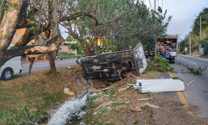 Según el reporte de las autoridades, un camión perdió el control y terminó impactando contra un poste de electricidad, lo que ocasionó daños materiales en la zona.