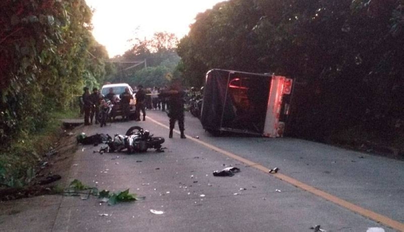 Un trágico accidente ocurrió la tarde de ayer en la carretera a El Boquerón, en Santa Tecla, donde dos personas perdieron la vida tras chocar con un camión. El incidente se registró en el kilómetro 22 de la mencionada vía, cuando las personas se desplazaban en una motocicleta y colisionaron con el vehículo pesado, que volcó como consecuencia del impacto.