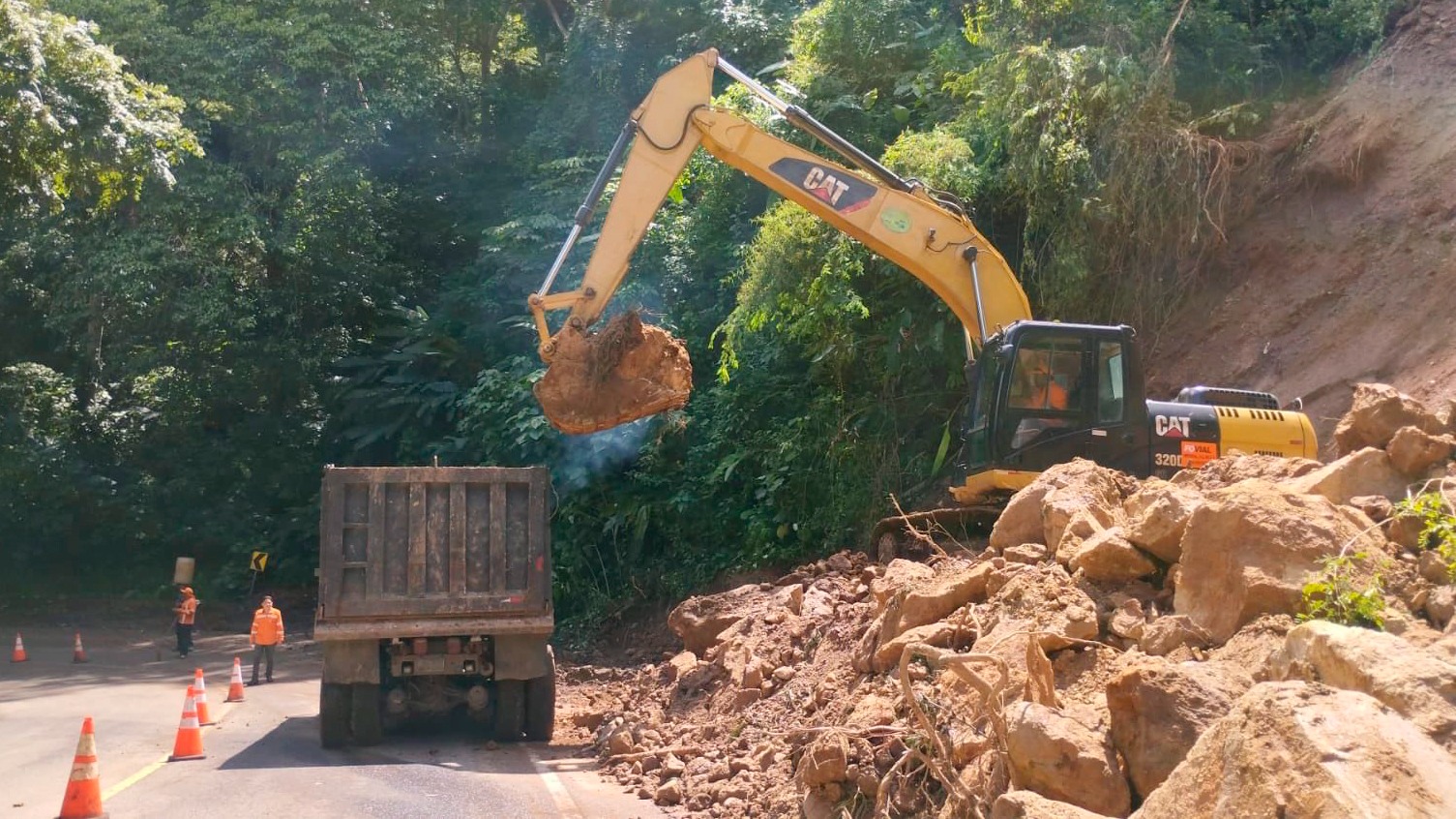 Entre los incidentes más recientes, destacó el derrumbe de grandes rocas en el kilómetro 12 de la carretera a Panchimalco, donde las cuadrillas realizaron una demolición controlada para remover el material. El paso fue restringido temporalmente por motivos de seguridad.