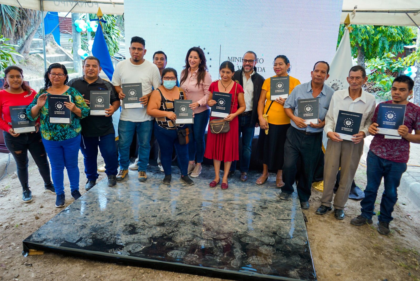 En total, la ministra Sol entregó 207 escrituras de propiedad a familias de la comunidad Emmanuel, ubicada en el distrito de San Martín, en el departamento de San Salvador. Según el Ministerio de Vivienda, el 70 % de los beneficiados con esta entrega son mujeres.