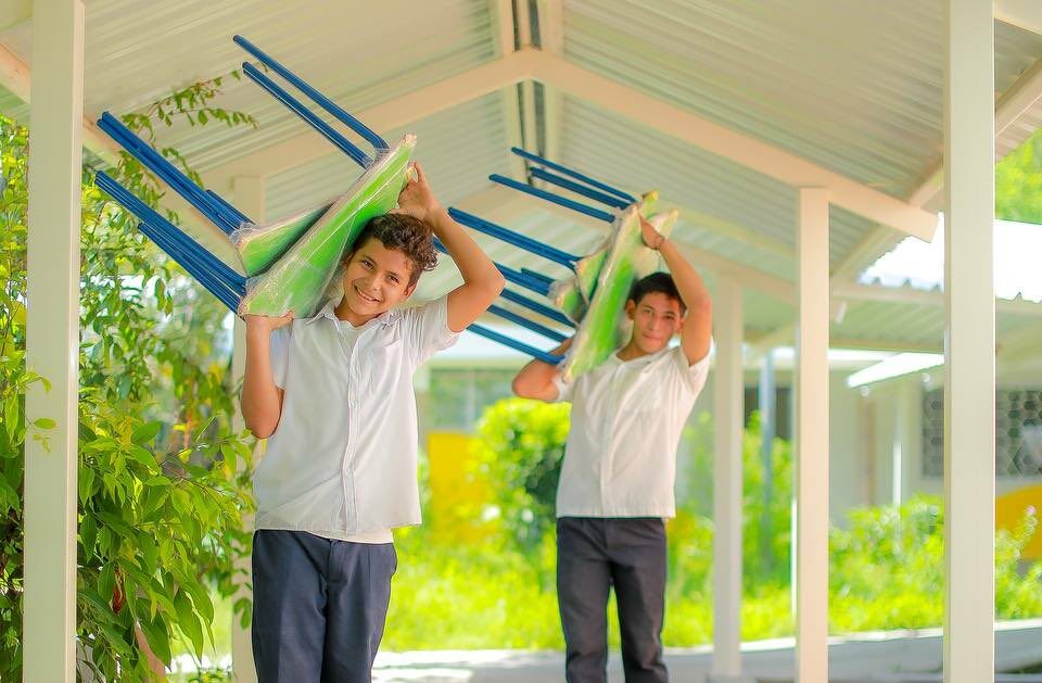 Las mejoras en el centro educativo incluyen aulas nuevas, una cancha remodelada, y pupitres de calidad. Los estudiantes podrán aprender en una infraestructura de primer nivel que también incluye áreas verdes, salones amplios y un mobiliario nuevo, todo bajo una fachada moderna que promueve un ambiente propicio para el aprendizaje.