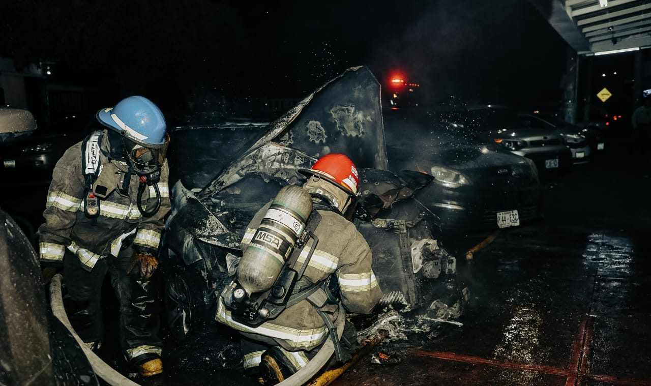 En la madrugada de este miércoles, el Cuerpo de Bomberos respondió a un incendio que consumió un vehículo sedán en la avenida El Boquerón, calle El Jabalí, en Ciudad Merliot, Santa Tecla, departamento de La Libertad.