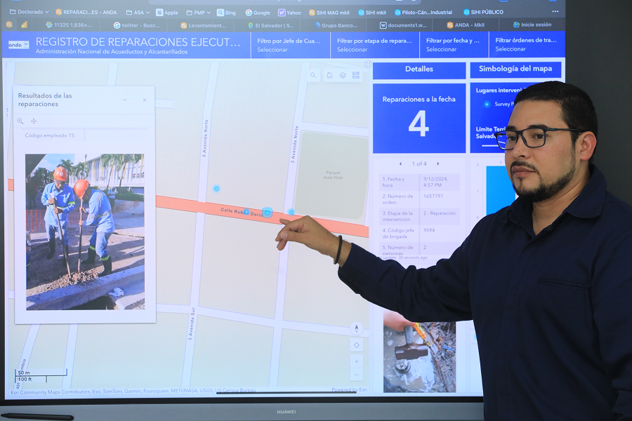 Este innovador sistema proporciona datos en tiempo real sobre las reparaciones realizadas, identificando con precisión las zonas intervenidas y el estado actual de cada reparación. En lo que va del mes, ANDA ha atendido más de 8,300 reportes.