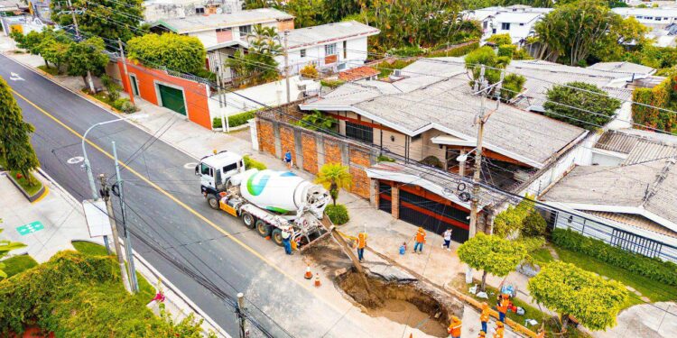 “Una vez que hayamos completado el relleno de la cárcava con lodocreto en la calle La Mascota, San Salvador, procederemos a aplicar mezcla asfáltica para reabrir el tramo afectado”, anunció el Fovial a través de la red X.